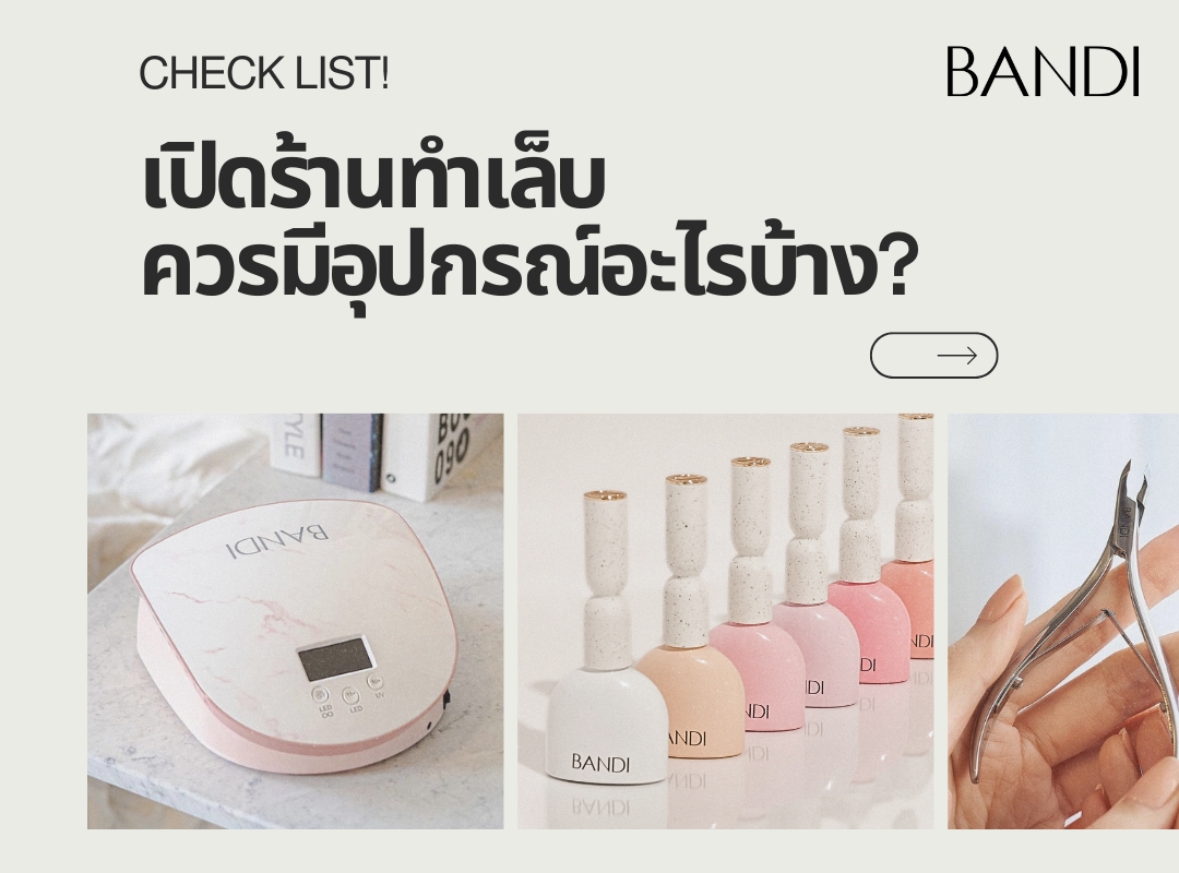 แนะนำรายการผลิตภัณฑ์และอุปกรณ์ทำเล็บเตรียมความพร้อมเข้าร้านใหม่แบบฉบับ BANDI Thailand ดังนี้